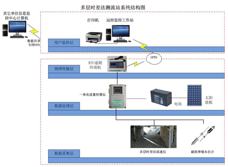 本測流設備主要有多層時差法流速儀、高精度水位計(磁致伸縮或磁編碼器浮子式等)一體化積算儀、傳輸模塊和供電單元組成。我司通過對國內(nèi)外諸多廠家的明渠測流設備功能與特點的統(tǒng)計與分析,總結出普遍存在諸多問題后(如:渠道結構多樣性、水質較差,漂浮物較多、淤泥沉淀和阻水等情況),為了能解決傳統(tǒng)產(chǎn)品的局限性,針對性的設計與研發(fā)了本測流系統(tǒng),經(jīng)過在諸多項目中的實際應用,取得了極佳的應用效果。